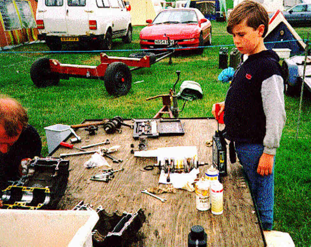 Three laps into the race, I was forced to retire with a damaged skirt (hit a post) and, though I didn't know it until later, a disintegrated big end.